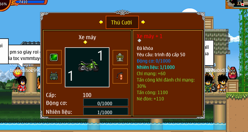 Nổi bật : tiêu lv59 vk14 full 12 full đồ mcs , còn 8m yên