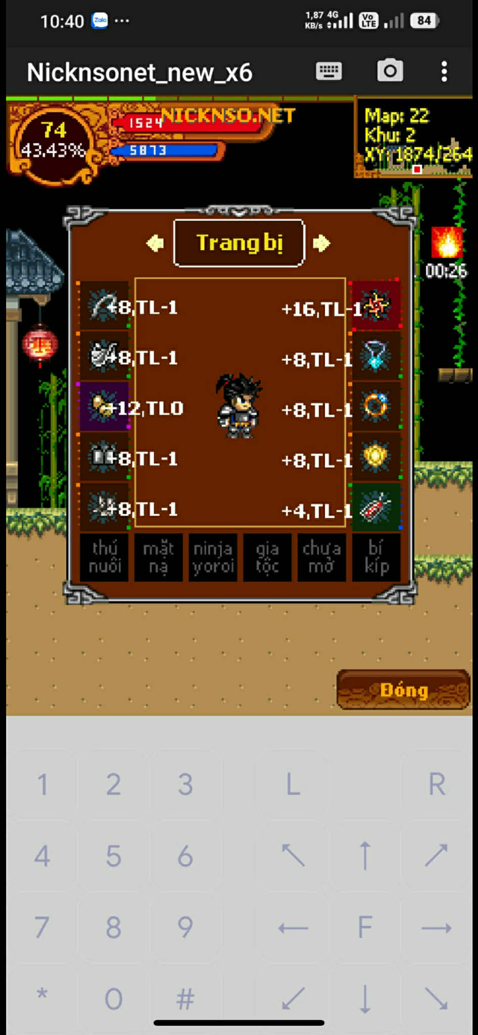 Nổi bật : phân thân tiêu lv74 , ac 1nv tk ko riêng , vk mcs