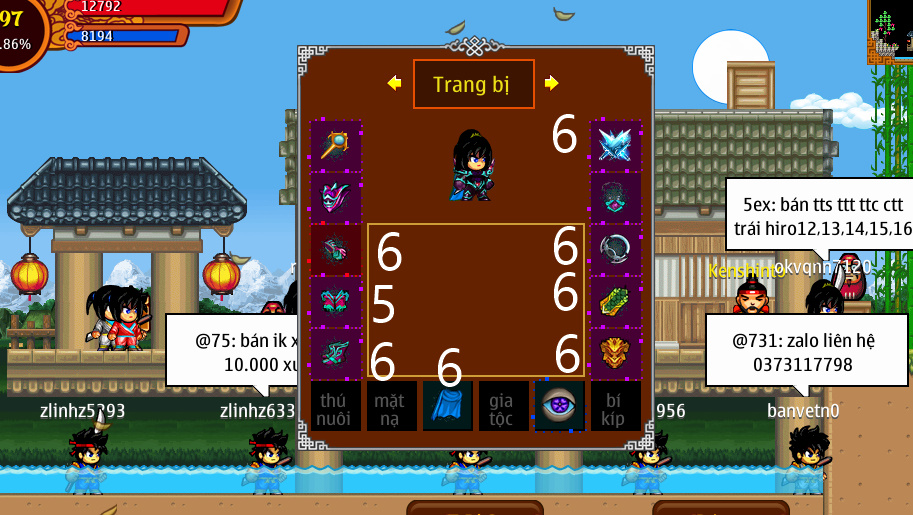 kunai lv49 8 món 12 , còn 327m...